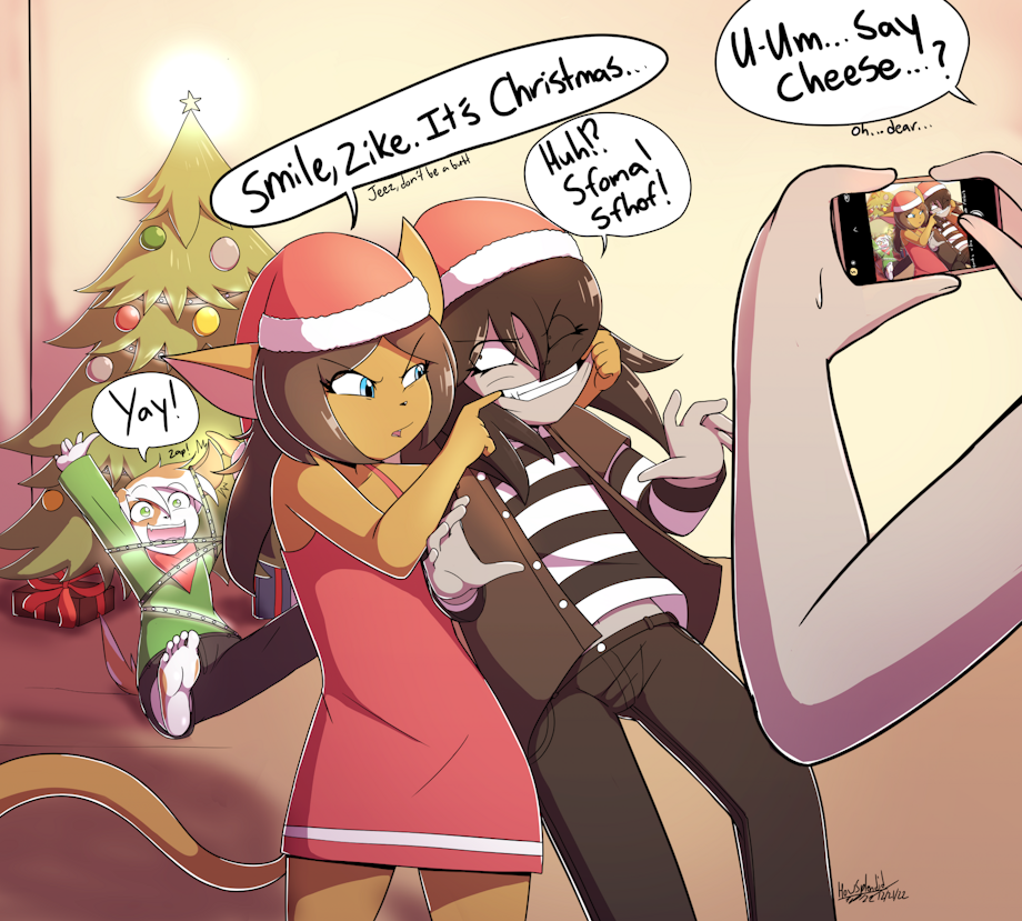 Lil christmas drawing with my characters Buddy Sana and Zike. They're having a good time.....I think.