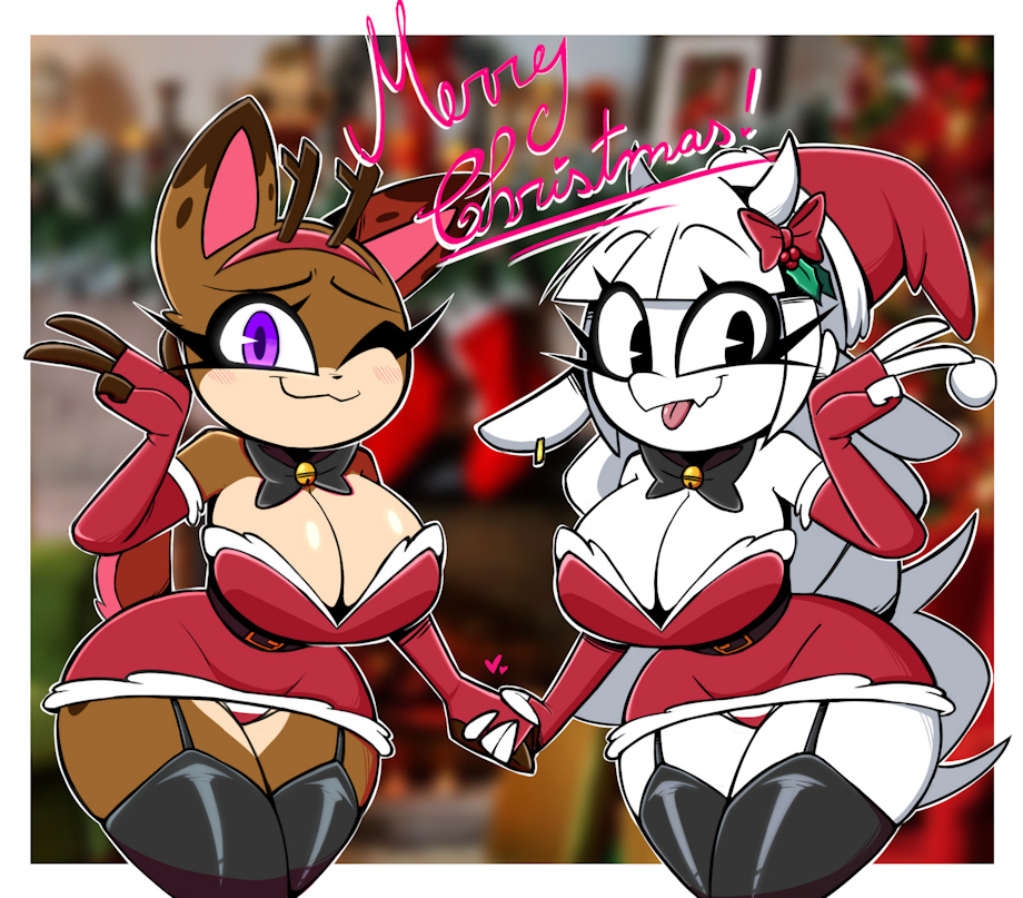 Ah, Nell! This holiday pic turned out so wonderfully cute and sexy! Truly is a gift to see the lesbian couple in a picture together being the teases they are.