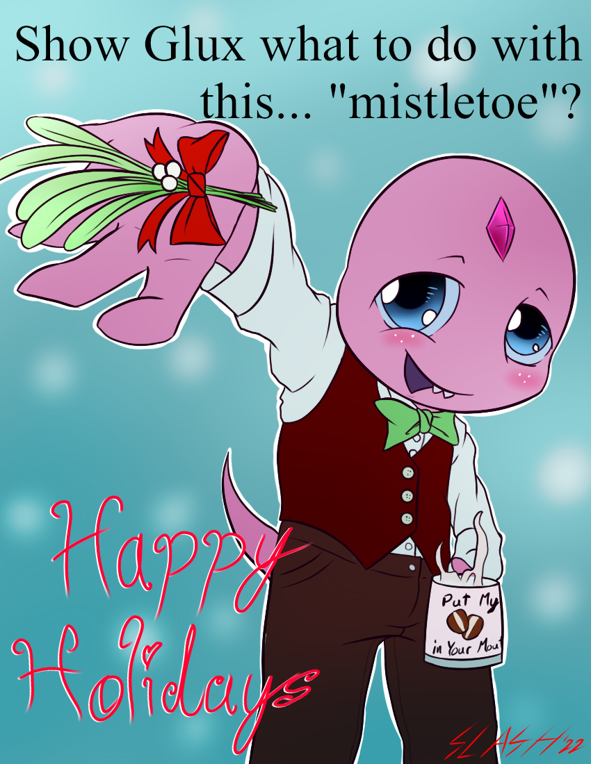 Thought this Secret Santa thing would give me inspiration. Here's a gay alien suggesting you show him the ways of the naughty mistletoe.
