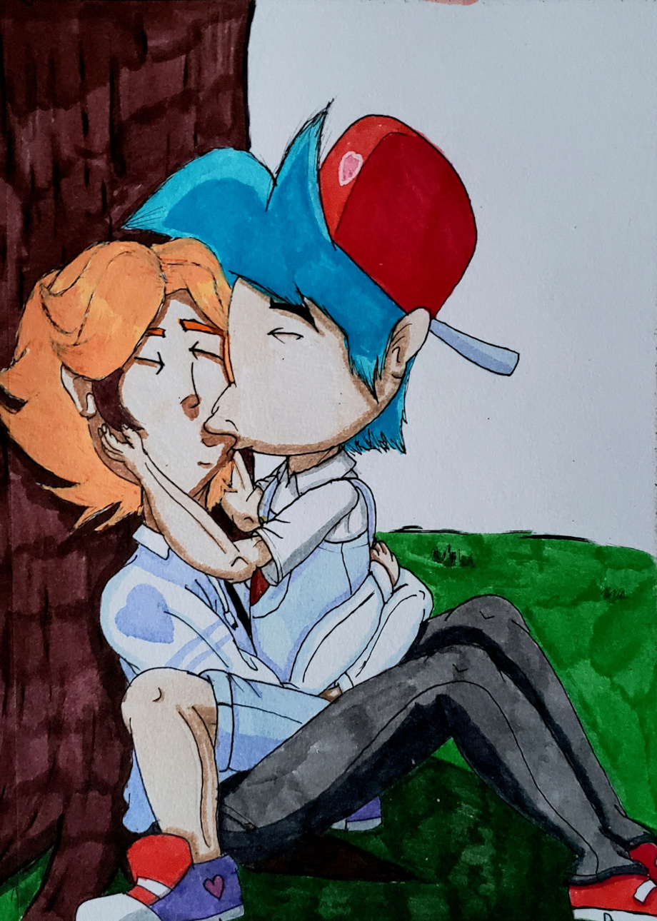 Boyfriend and Senpai from Friday Night Funkin': Cherry Blossom Date.