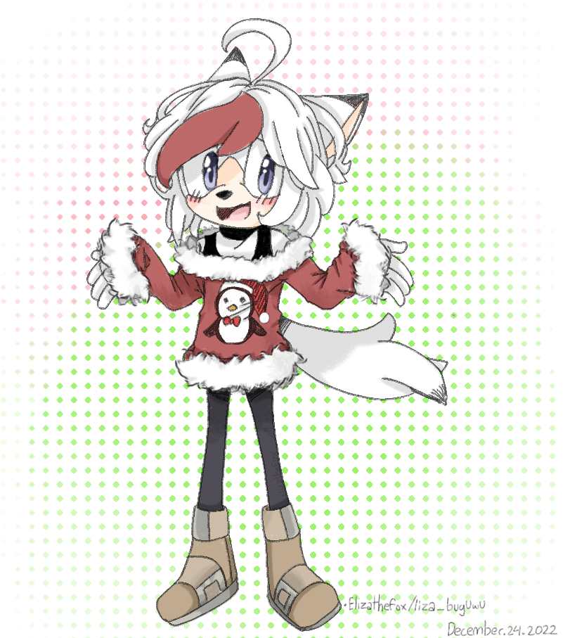 Merry Christmas everyone, I made some art of one of my characters wearing a cute and floofy Christmas sweater.~~ 🎄✨