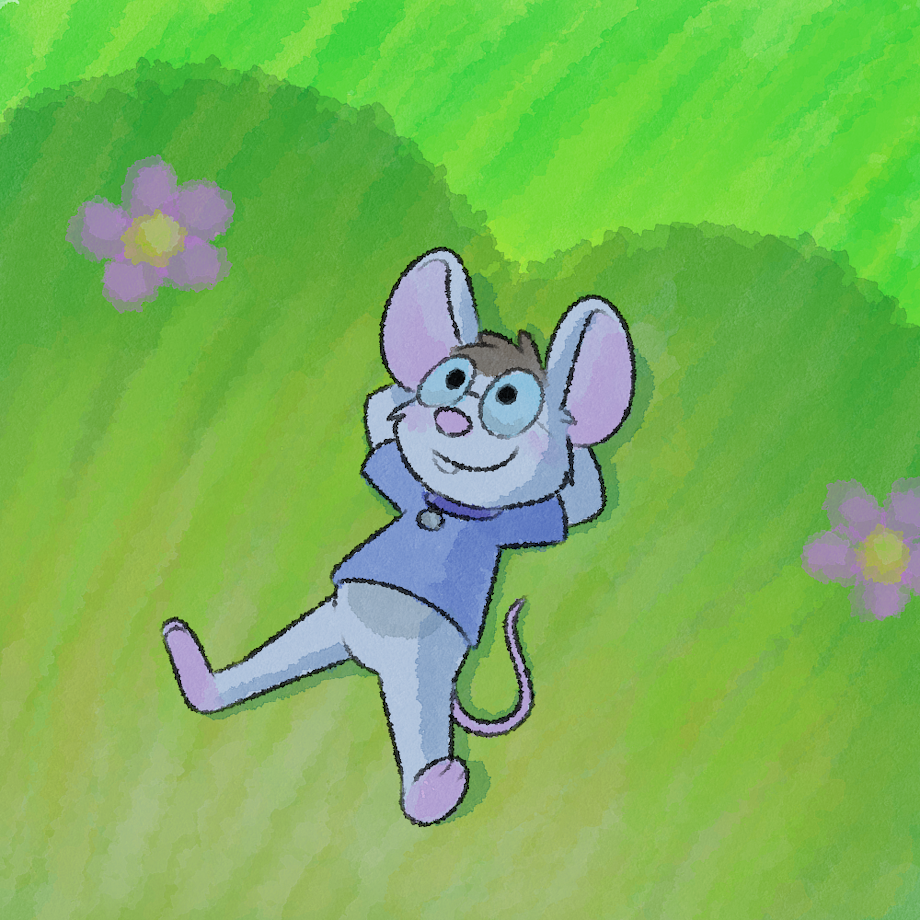 More christmas art! Oops I meant to post this yesterday. It's of Rex the Mouse! :3 My fellow romantic rodent - just a silly lil meme post for him this year - that one Spongebob image where he's laying out in the grass field with a big butt shadow hovering above him... hehehe, my friends use that a lot, and it made me think of Rex! He'd be juuust fine in that situation. Heck, he'd probably love it! So, just a cute clean drawing of his widdle guy relaxing before the big squish!
