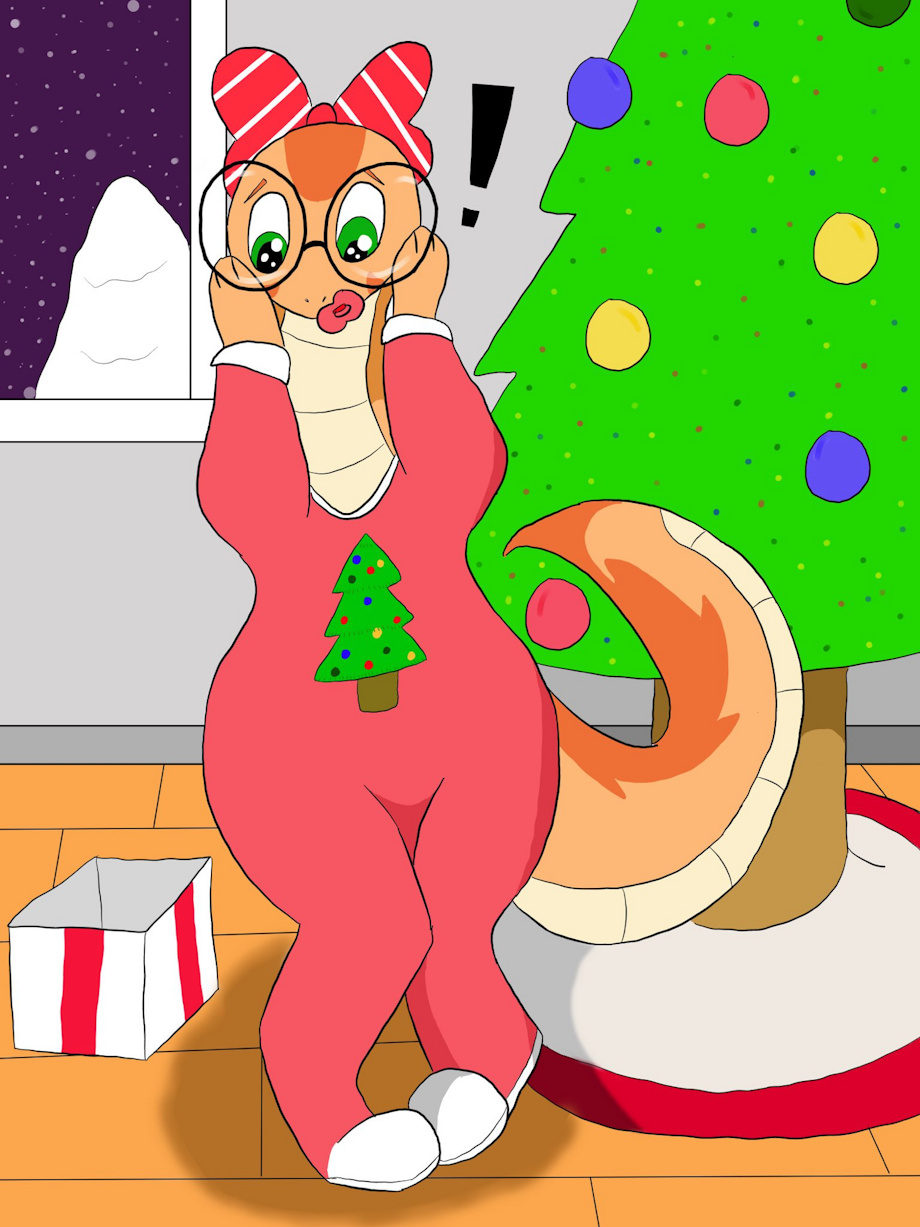 Commission for Alternateguy234 of them opening a Christmas gift. To there surprise it was a child’s onesie. Before they can react they were wearing it and finding themselves transforming into a anthro snake but that wasn’t the only thing. They were shrinking? No they were regressing back in age. They screamed a voice unfamiliar to him. More childish more girly. A binky muffles there attempts to yell. A poofy padded diaper magically wraps around there bottom. A cute Christmas theme bow finishing everything up