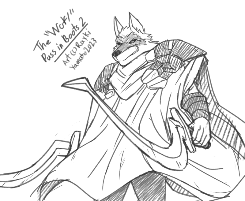 Only reason drew the "Wolf" from Puss in Boots 2, was to draw him with Gundam Sandrock's coat and Heat Shotels.