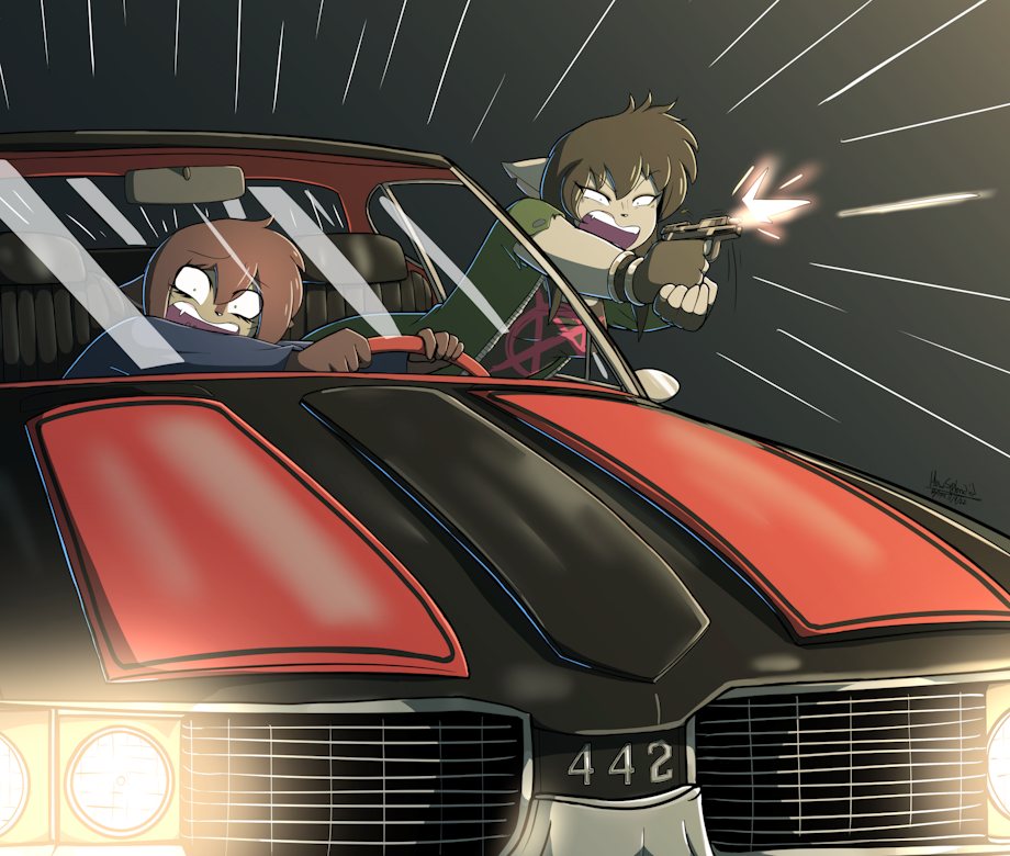 Drawing suggestion by Kokeiden of my characters Mole and Zoe chasing down some peeps.