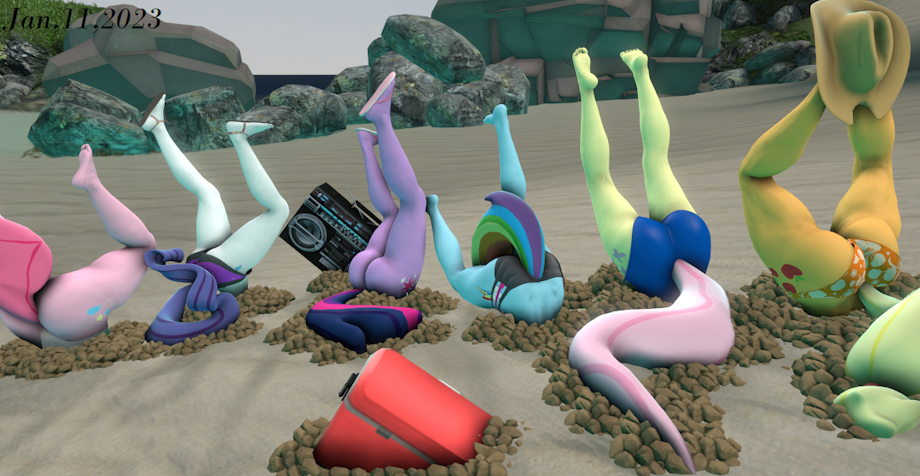 Someone had asked to see the main six head down on the beach. I did the best I could with what I had to work with. They were happy with it, I feel I could have done better. But whatever, its done I will let you all know this now. I will not be taking any requests at this time. As I would like to go my own way on some other ideas. That I have with SFM, yes it will still be the same. But I have my own ideas. So if you want to see more of my work. Head over to my deviant art page. And for some of my work that can't be fully shown on there. Follow me on my Inkbunny page. And if you want to donate to me. Head over to my patron page, Or PayPal at shadowbrony1942@gmail.com