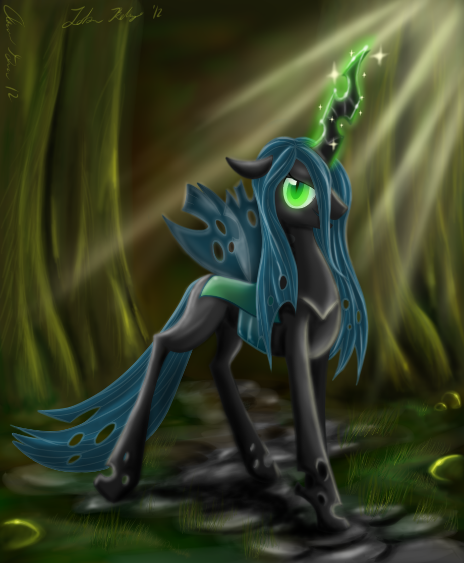 So i was up at 3 am last knight listening to fan made pony music mostly to "This day aria" and i couldn't help but have the need to sketch out queen chrysalis, so then this morning i decided to continue on the picture and ended up with this, i have to say im starting to improve on my digital art, i hope that you all like this my fellow bronies.