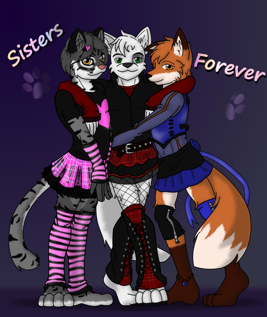 A picture I drew for three furry sisters who are great friends of mine :3