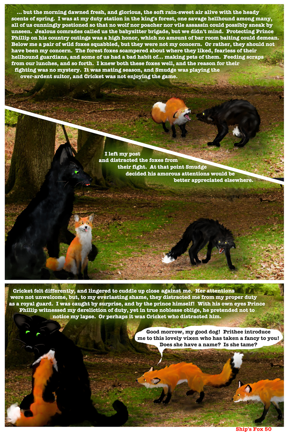 Singing was another thing Private Ichor Sanguine was not supposed to do while on sentinel duty. He had always sung very softly, so that the other hellhounds would not hear him, but now he was singing in his normal voice. He was obeying a direct order from the king's son and heir, and he suspected Prince Phillip would be wroth with him if he whisper-sang.