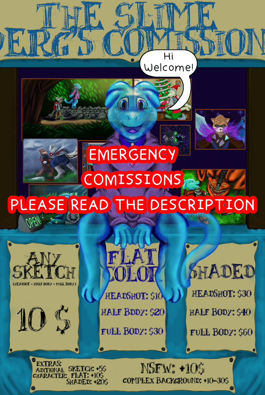 Well everyone I'm comming here to post that I'm sadly needing to raise money. The reason is that I found out I have a problem with my eyes, If I had caught that sooner I wouldn't be bothering you guys with that, but sadly I found it in a very advanced state, so yeah.... I'm in danger of loosing my vision. I didn't wanted to make this post but a friend told me it's important that I at least try so check my profile to find some examples of my work up here is my price chart, if it's too expensive for you come to my dms and we can negotiate, I would apreciate if any of you could share this post around it would help me a lot