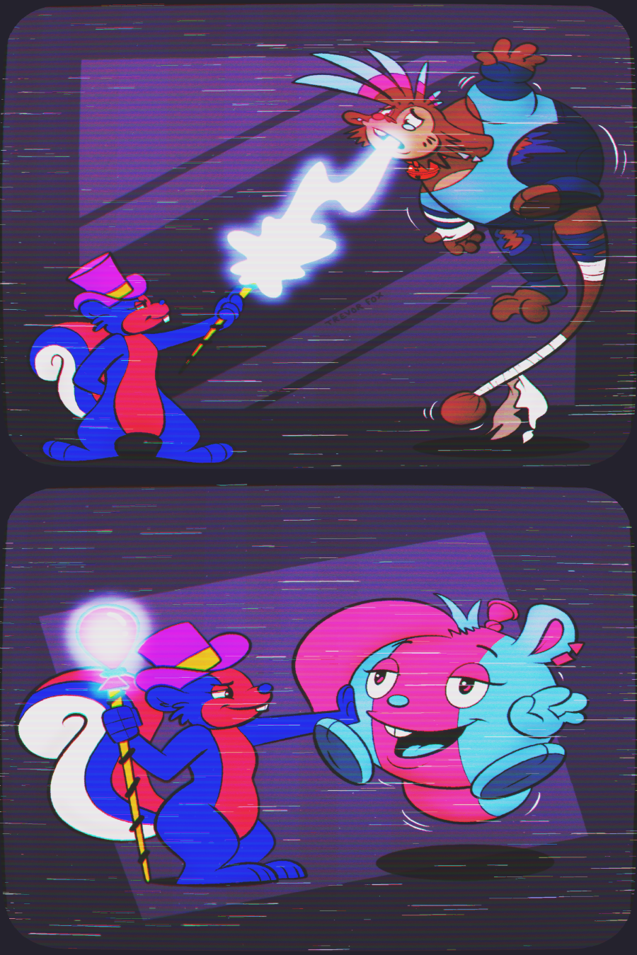I was unfortunate enough to cross paths with Poppy the squirrel who seized the opportunity suck out my soul using her magic staff. I floated up, unable to stop her, ballooning out into a female minion that would serve her every whim!