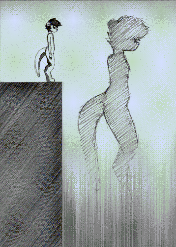Gaze down, gaze down. Do I join the wind? Will I, with one step, will I fly, or will I die? --- Inspired to write this little bit. Thank you for your art. Hope you are okay.