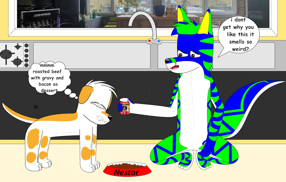 hey guys!!! so ever wonder why dogs like dog food? i have to admit that depending on the brand it doesnt smell bad but i would never eat it that would be sick and disgusting but my point being i wonder why nestor enjoys it so much? we usually give him orlando beef dog food pate becaus well he is a picky eater but still how does he like it??? it reminds me abouth meet the spartans https://www.youtube.com/watch?v=s1vx_CM1wIc by the way i never have seen the full scene becaus sometimes they short out thes typ of movies XDX3