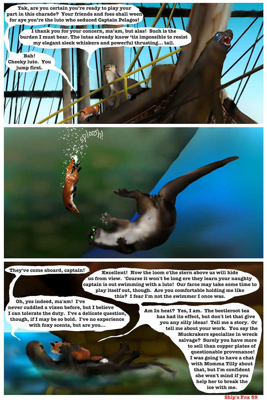 Despite her unexpected new form, Captain Pelagos is still considered to be an otter under Valinonian law. Hans is an otter too, because he was abandoned by his human parents and adopted by the Pelagos clan. If Hans married a luta and they wanted kits, his closest adult male relative would be asked to serve as surrogate father. That luto would be Vortex: Skritch’s biological father and Hans’ adopted father.