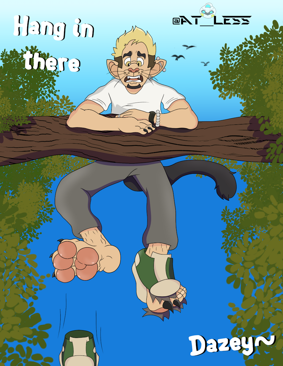Art trade with /@DazeChanged. Help him get down before he completely changes! 🐱