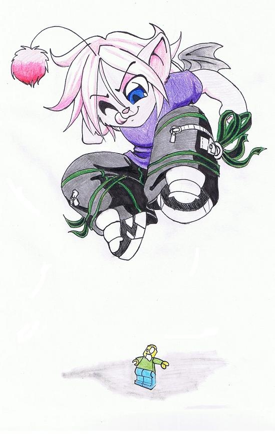 A prize for participating in a little competition Aqua Dragon was holding a while ago (I dunno what the result was. :/). Here we have chibi-Tsumi in his favourite obnoxiously jingly Tripp pants about to indulge his stompy, evil side.