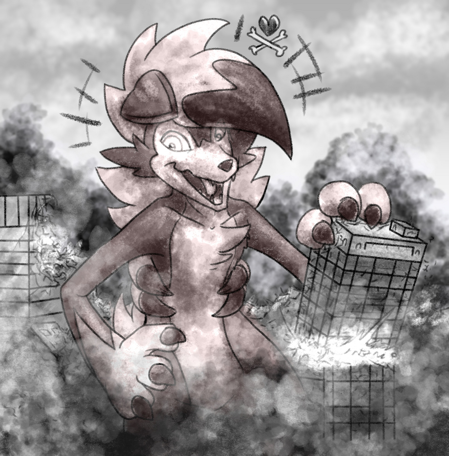 He's such a good boy and he knows it, helping the humans get rid of all these congested buildings and cities to rebuild with cleaner energy sources!