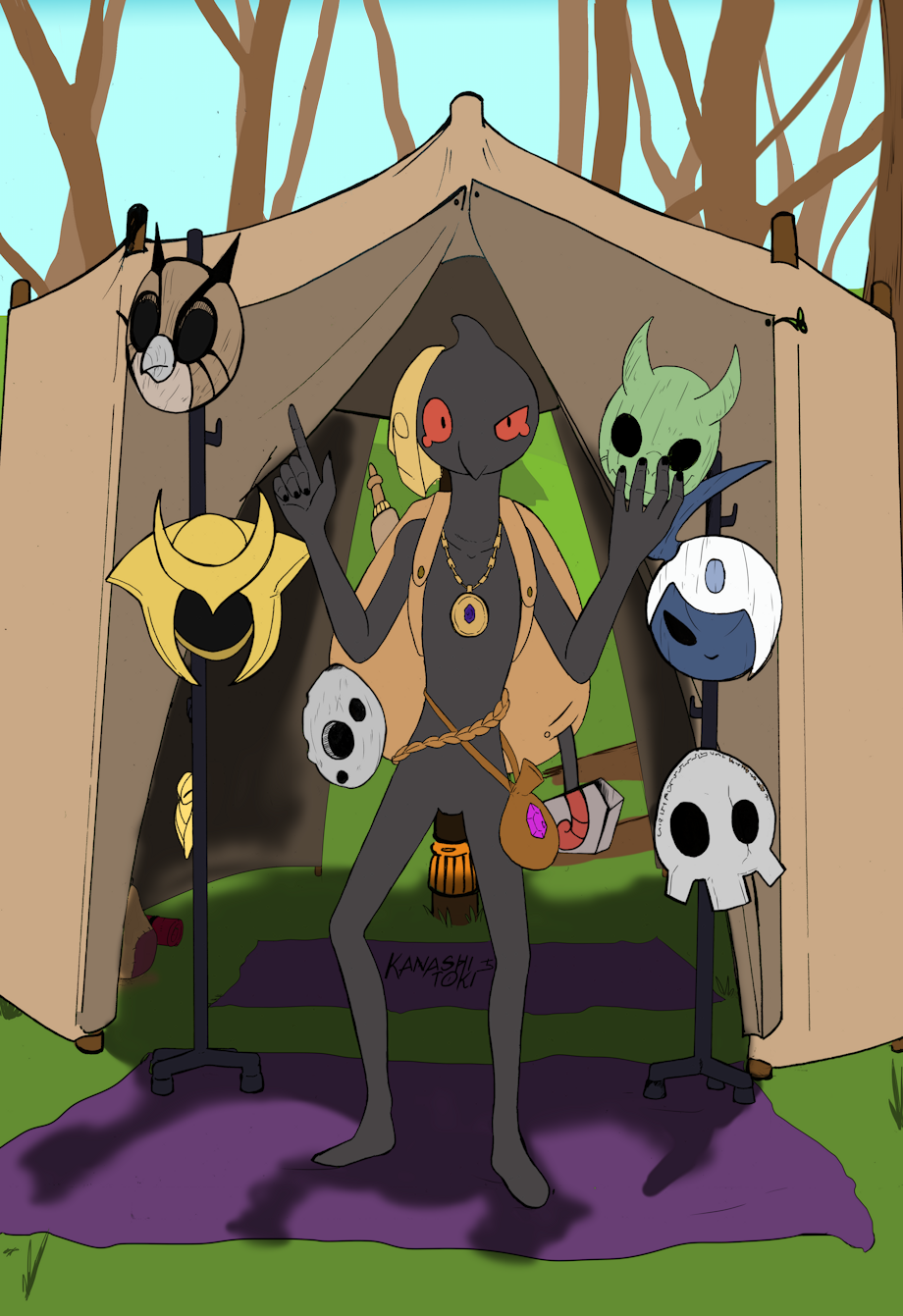 Again the yamask which sells his masks during the day. He sets up his tent in some public place. I wonder what selling point he must have and what kind of powers his masks would have. <w< (some things are still in development on this side but suggestions are welcome)