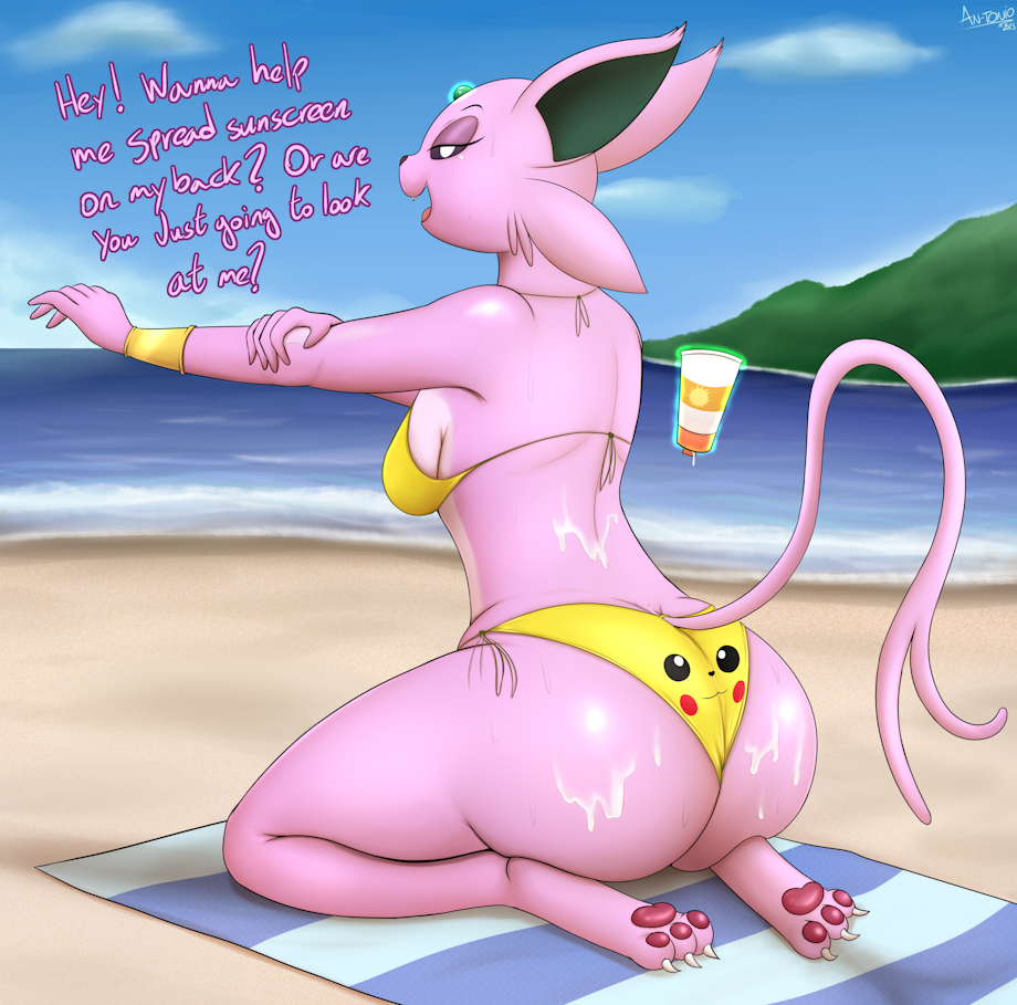First art with Silvia, my new Espeon OC that wanna take a sunbathe but she need you help to her with the sunscreen before it 🏖️