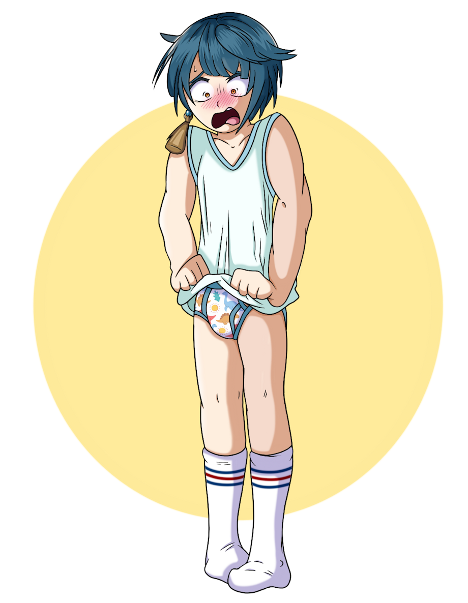 Xingqiu has accidentally lost his clothes. How did this happen? No one knows and no one is itching to find out because he looks better like this. Don't you think? Those underoos and those socks are quite cute.