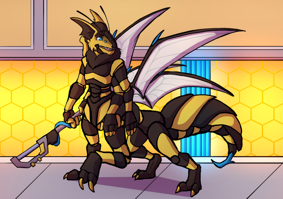 Somewhere in the space of the hive we've got chitinous warriors equipped with laser cutter polearms