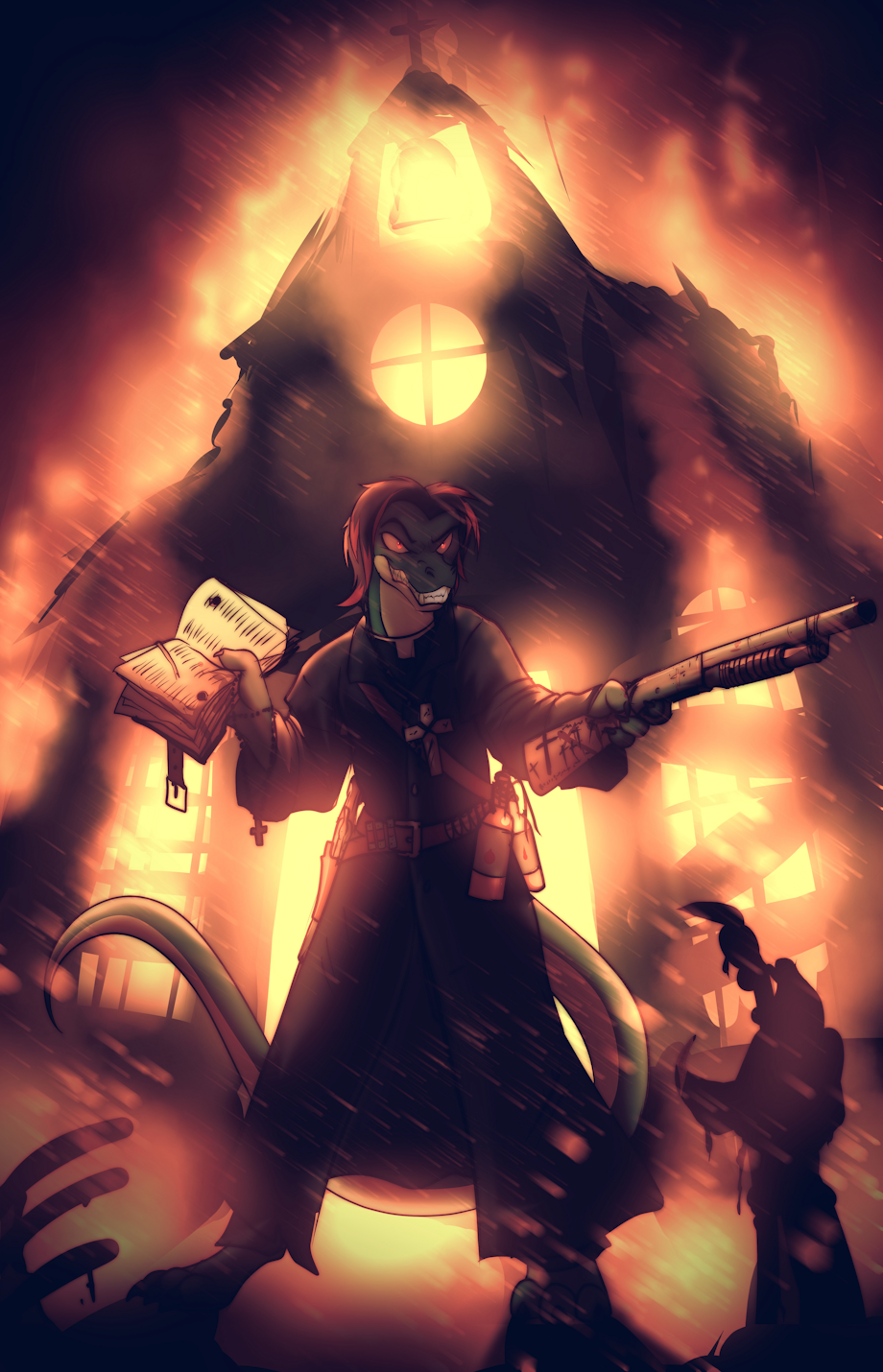 So I don't know why but I've always liked bad ass priest/Paladin/what ever characters in movies shows or games so when spaceweasel2306 was offering pics done in the style of the game Hunt: Showdown I asked if there was a priest character or something similar and I was happy to find out there was! I have not tried Hunt: Showdown yet but the pic alone makes me want to try it at some point. Big big thanks to the awesome spaceweasel2306 for making this happen and of course going so goddamn hard on this pic!