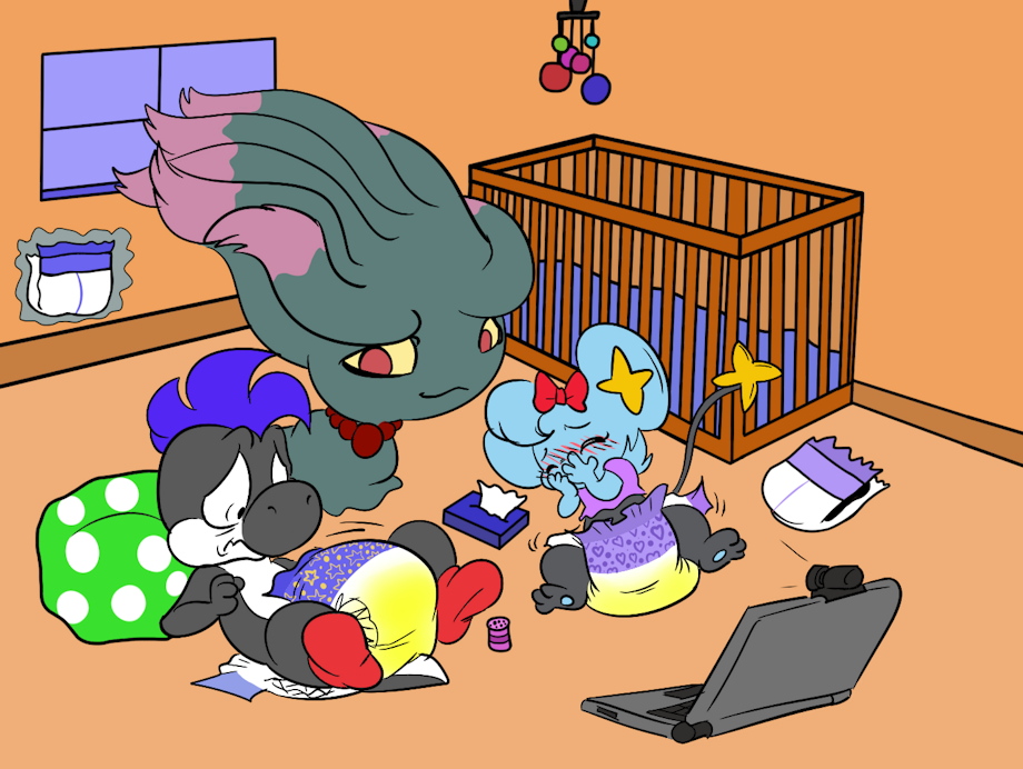 Rogue and Katie were trying to stream when mommy ghost showed up to change their diapers. :P