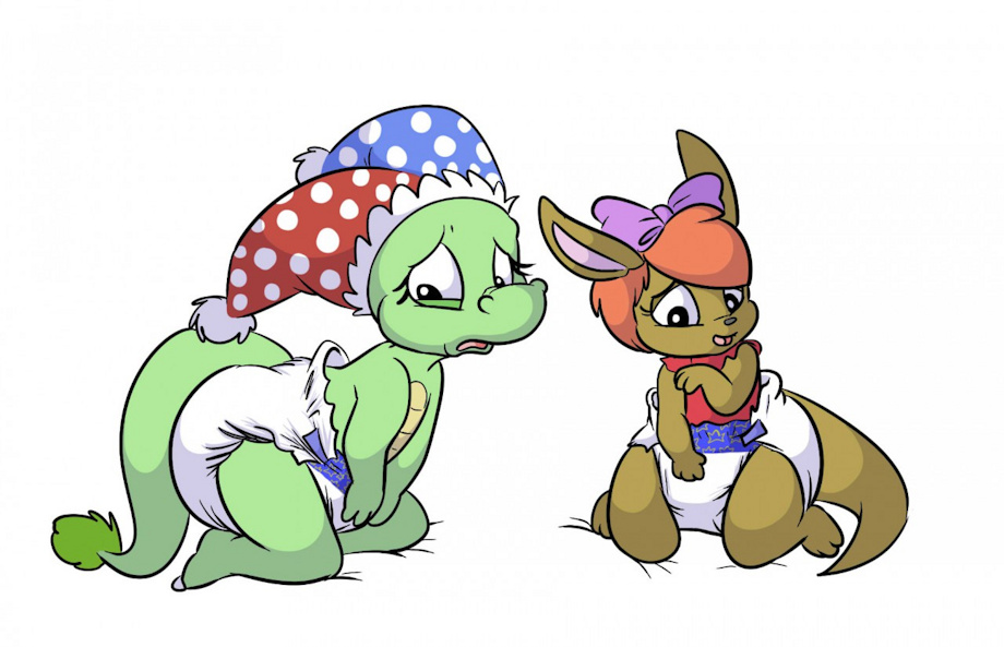 Poor Serpent and Maline wear night diapers to bed for bedwetting, but it seems they were having so much fun that they didn't realize they had to go potty...