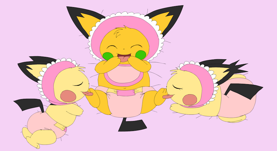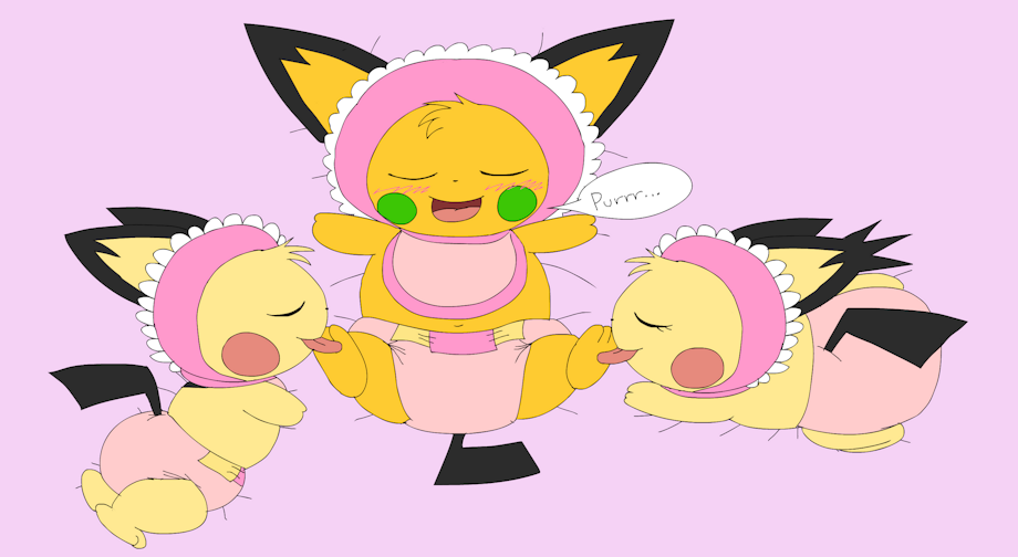 Sparks and Sparkette licking Donnie's feet here while all are in pink diapers and bonnets x3