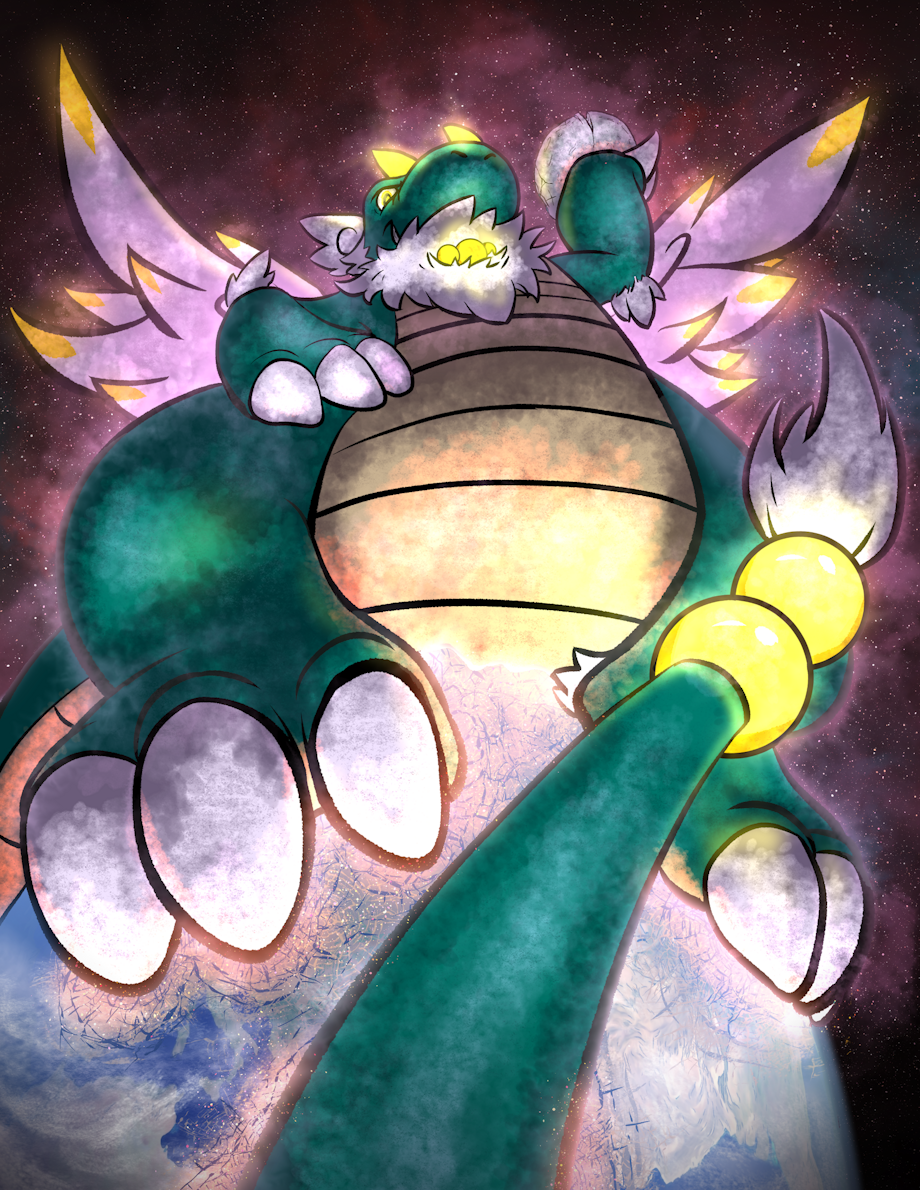 Of course, as soon as Poppy introduced me to Ananke the Dragonite, I had to draw them especially Massive and Happy to be showing off where the Earth belongs.