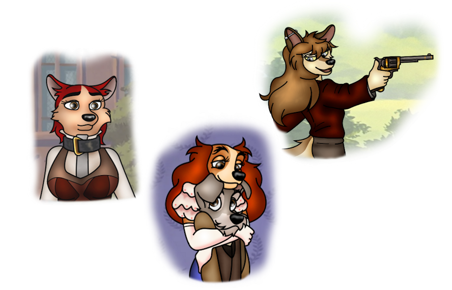 Just a little bit of practice for my AU. Trying a new angle on Jenna, Lady and Tramp being cute, and Aleu getting a little dead eye practice.