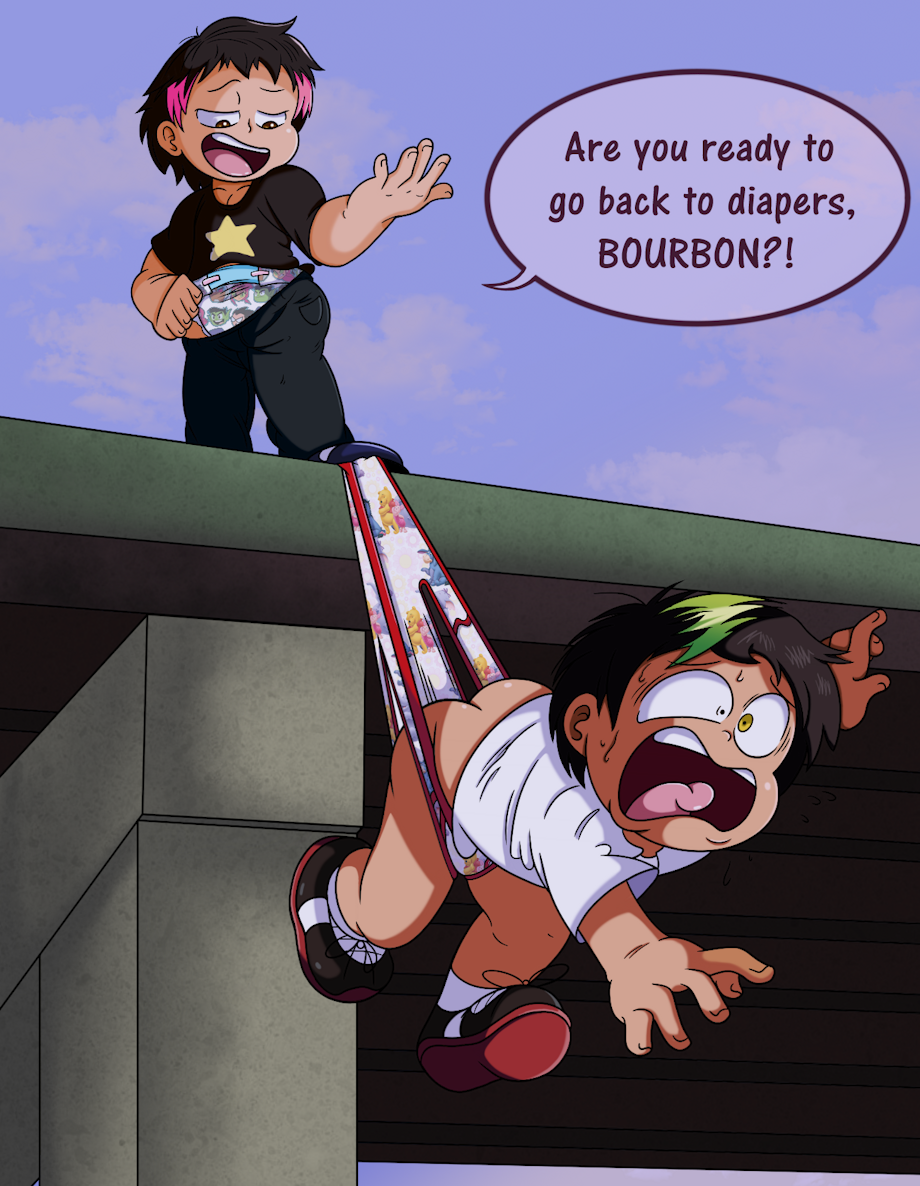 Tamia and Bourbon are friends. Really. They even run a detective agency together and solve mysteries. However, sometimes they have their fights. Bourbon made fun of Tamia being in diapers so the retaliation was swift and quick. He'll agree to his punishment or risk seeing if this wedgie will break.