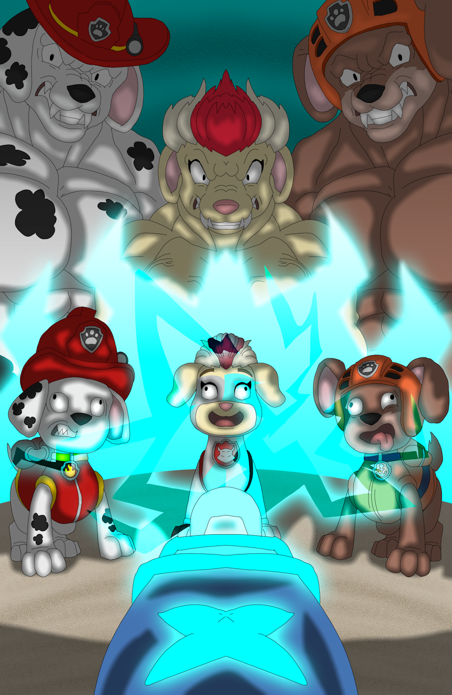 's few requests, this time wanting to turn the three pups into their anthropomorphic buff adult-like selves.