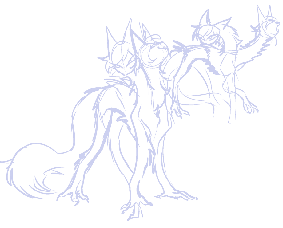 another commission in this format...! have been enjoying the results. i was very kindly commissioned by twitter user bbbblebbbbb for this two headed sphinx OC. the black head is more energetic and physical, while the white head is more severe and handles communication to others.