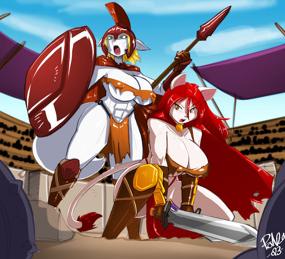 Here we have the return of :iconmatymatypup: Jessica as she drew her as a spartan for me. Much more modest to say the least. Alongside Leona my silver lioness who both Sho and Maty