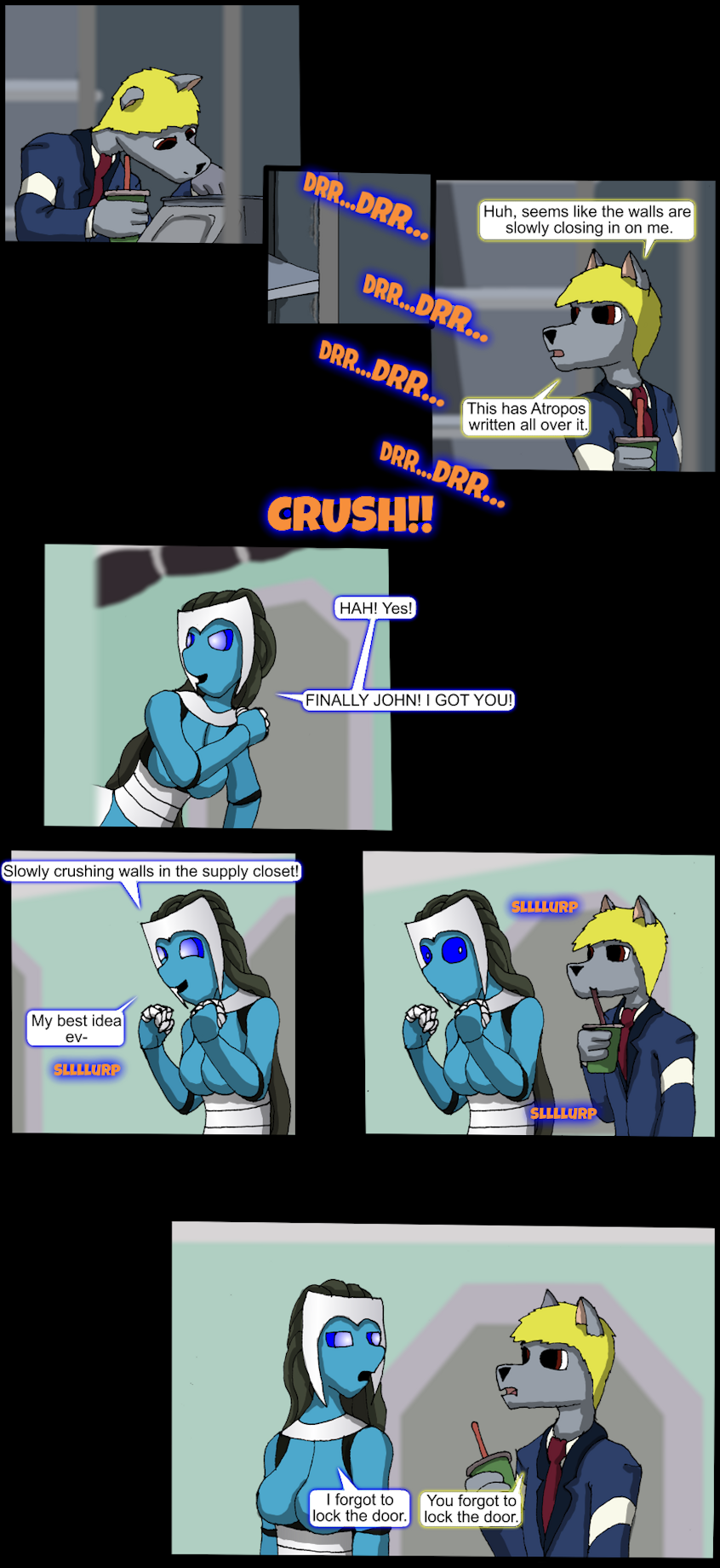 Really he could've just emptied a shelf and climbed in because there's no way she'd let a trap destroy valuable company supplies.