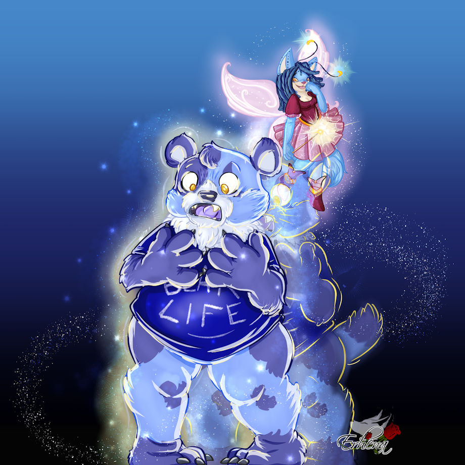 This is a commission for my best friend, my Kittybear. In this picture, Erhena had change him into a bear (he's a cat at the origins).
