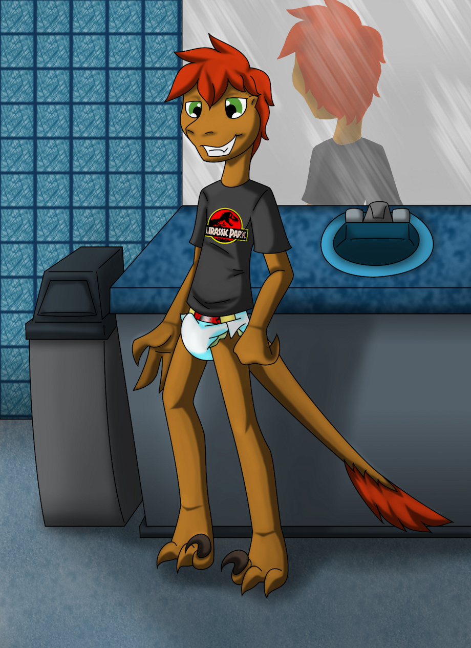 "Hey Darwin! You need a hand in there? I'm a grade A experienced diaper changer." Spencer called out and while he couldn't see anything he was certain he'd made the blond Troodon in the stall flinch and probably blush too.