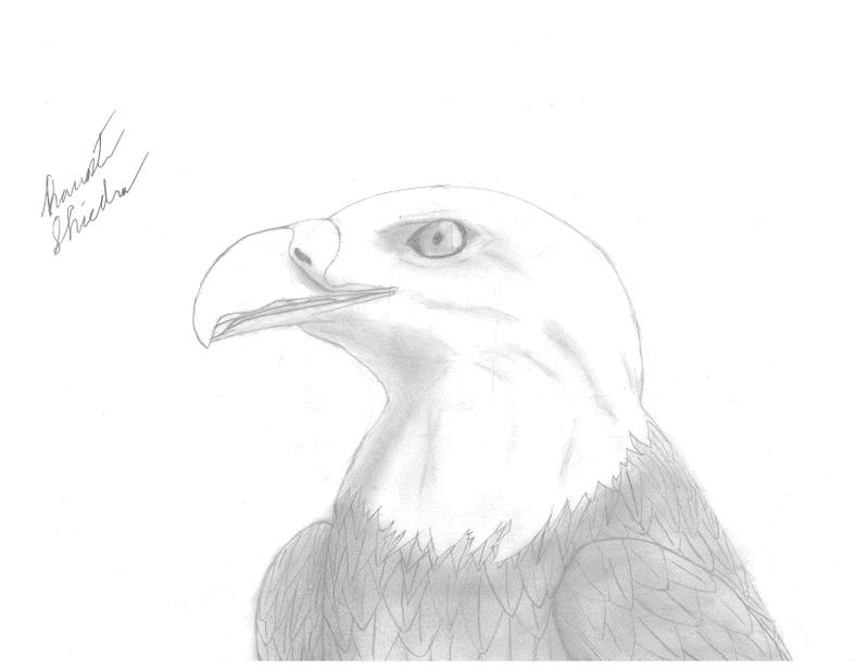 A sketch/drawing of a bald eagle i did years ago for a friend who later became my mate. All done with a single #2 pencil.