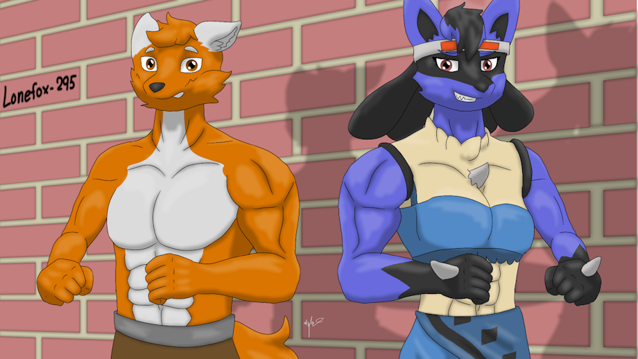 Artworks from left to right: 1. Blaze (Normal and Muscular Draw), published on Nov 10, 2018 2. Lonefox (Normal and Muscular Draw), published on Jan 17, 2019 3. Sarah (Normal and Muscular Draw), published on Jan 21, 2019 4. Lonefox's Sisters, published on Apr 14, 2019 5. Vani the Female Lucario, a Belly Dancer, published on May 24, 2019 6. Maximilian and F. Lucario, published on Nov 29, 2019
