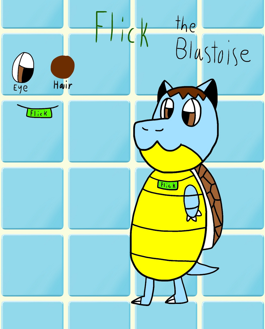 Flick is a Blastoise that have Brown hair and the son of Sam the Squirtle.