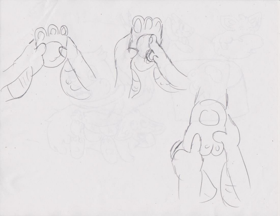 2) -Mientras agarraba la pata de minccino se puso a jugar con ellas, haciéndole muchas cosquillas a minccino -Comenzó hurgando en la almohadilla de la pata (cerca de la pata con pliegues visibles en el área que está hurgando) -Luego usó el dorso de su dedo índice para frotar hacia arriba en la pata (cerca de la pata) -Luego presionó su dedo hacia abajo y comenzó a frotar hacia abajo (cerca de la pata con marcas de pliegues siguiendo el dedo)