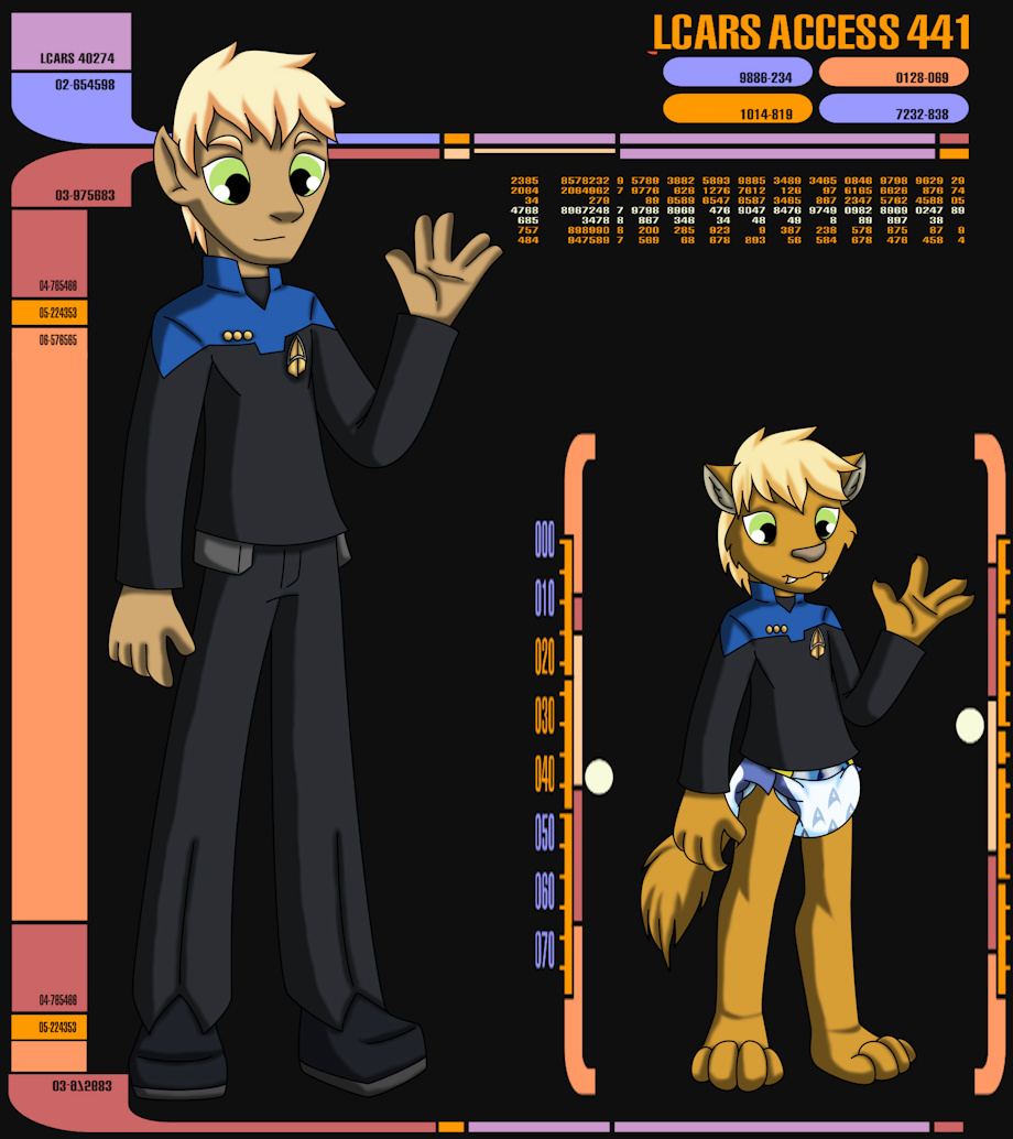 Lai'k' father was a non traditional Vulcan believing in the control but not suppression of one's emotions and that to suppress and ignore one's emotions entirely was illogical and potentially damaging. His mother was a Romulan who fled the Empire during her childhood with her parents due to their latent telepathic ability. She took an interest in Vulcan history and study of telepathic abilities in not only Vulcans but numerous species. The two met in StarFleet and would later be married on Vulcan with their captain presiding over the marriage which was conducted in a non vulcan traditional manner. Lai'k himself was born a year or two later as his father took up a position at the Vulcan Shipyards. Lai'k was raised in the city of T'Paal and enjoyed it's infinity diversity. Most of his childhood friends were non Vulcans. His best friend was a Human Augment. The two had hoped to enter StarFleet together but the friend was barred due to the genetic augmentations. Lai'k was still encouraged by his friend to join StarFleet while his friend would enter the Daystrom Institute. Lai'k's early career would see him being instrumental in a crisis involving an AI, his actions saving both the AI and the ship as well. More recently he participated and lead the study of a small Iconian Gate found in outer regions of the Beta Quadrant. The Gate activated during the study and deposited a human from 2020's Earth before blowing out and causing the collapse of the facility. Several months later the Levana would experience and event which would transform it's crew into regressed anthropomorphic life forms. Lai'k has managed to cope well with this having previously had interest in infantile forms of recreation and relaxation as a means of helping to even out and express his emotions in a safe manner. It is not lost on him that he now resembles his Sehlat plush and pet back home.
