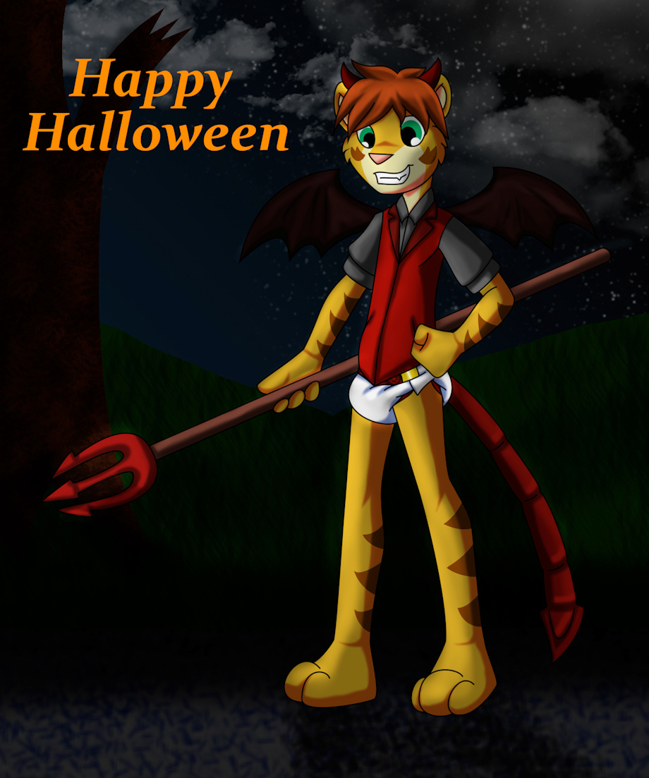 Lig grinned as he roamed around the big party space set up in the gym. It was a wonderful Halloween night and Trick or Treating earlier in the evening had given way to heading to the school for the haunted house, games, dancing, and of course more candy! Lig had decided this year to dress up as a lil something classic. A Devil. Specifically he considered himself a shoulder devil. One that would sit on the shoulder of cubbies being potty trained and encourage them to just go in their pawpers, pull-ups, or pants rather than actually got to the potty. A job his friends had told him he was all too qualified for. Lig giggled a bit when they said it but had to admit it was the truth. He was certainly quite the lil diaper cub. Indeed he had to get changed before he arrived given after all the trick or treating he had wound up pretty soggy and well didn't wanna leak and slip in the gym.