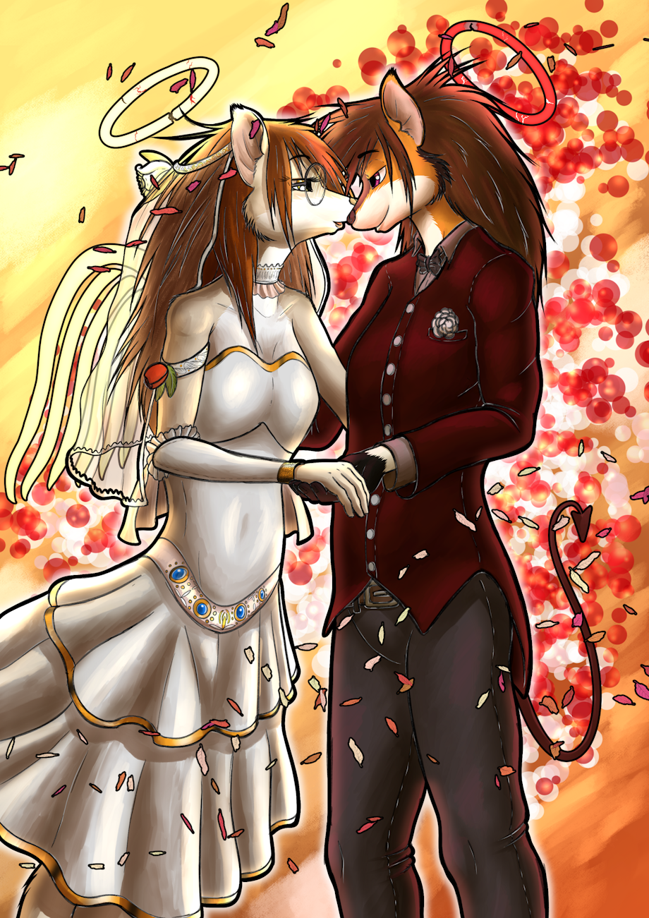 And that was my inspiration. For some back informations, Zaiks is a devil. And Ziva is an angel. Usualy their story is around the religious wars in Central Europe, during the middle ages. Zaiks, being a devil, but is tired to be always mean. And Ziva an angel, who is annoyed of the "purity" the angels force onto the humans.