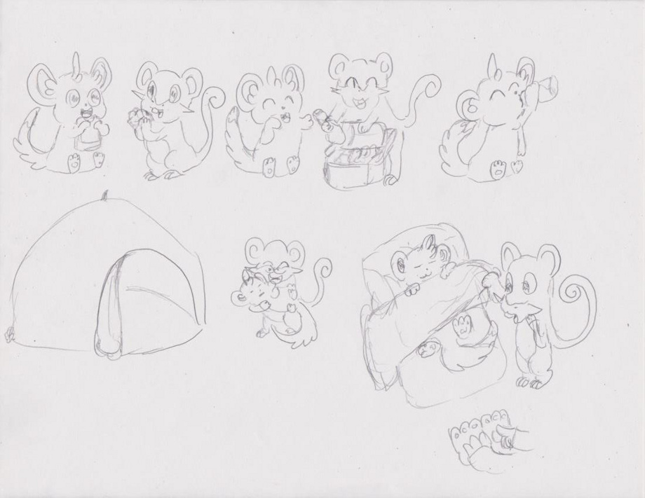 1) Un minccino y un rattata estaban acampando en un picnic El rattata fue a buscar un trago para él y minccino de la canasta de picnic. El rattata le da al minccino un trago de la canasta que él mismo había techado en secreto. El minccino felizmente lo toma y lo bebe
