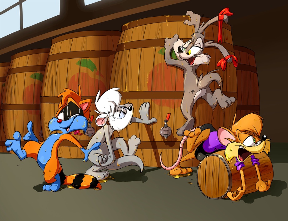 those hope the foursome had came into an apple farm and helped themselves to the apple cider when rhubella rat was already plastered when the raccoon was at the stages it was like the few creatures that wait for many fruits to ferment before having a feast while getting drunk.