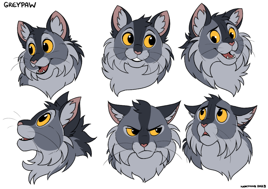 Another one of these expression sheets, this time of Greypaw/Graypaw! It was difficult trying to make him look more BABY since he's still a 'paw here, I just wanted to go super floof!