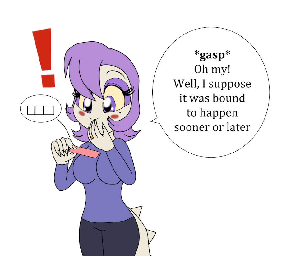 Ooh! Looks like Sabrina's got a bun in the oven! And yes, Chameleon is very happy that he's gonna be a papa. Mind you, she's gonna lay an egg, not give live birth.