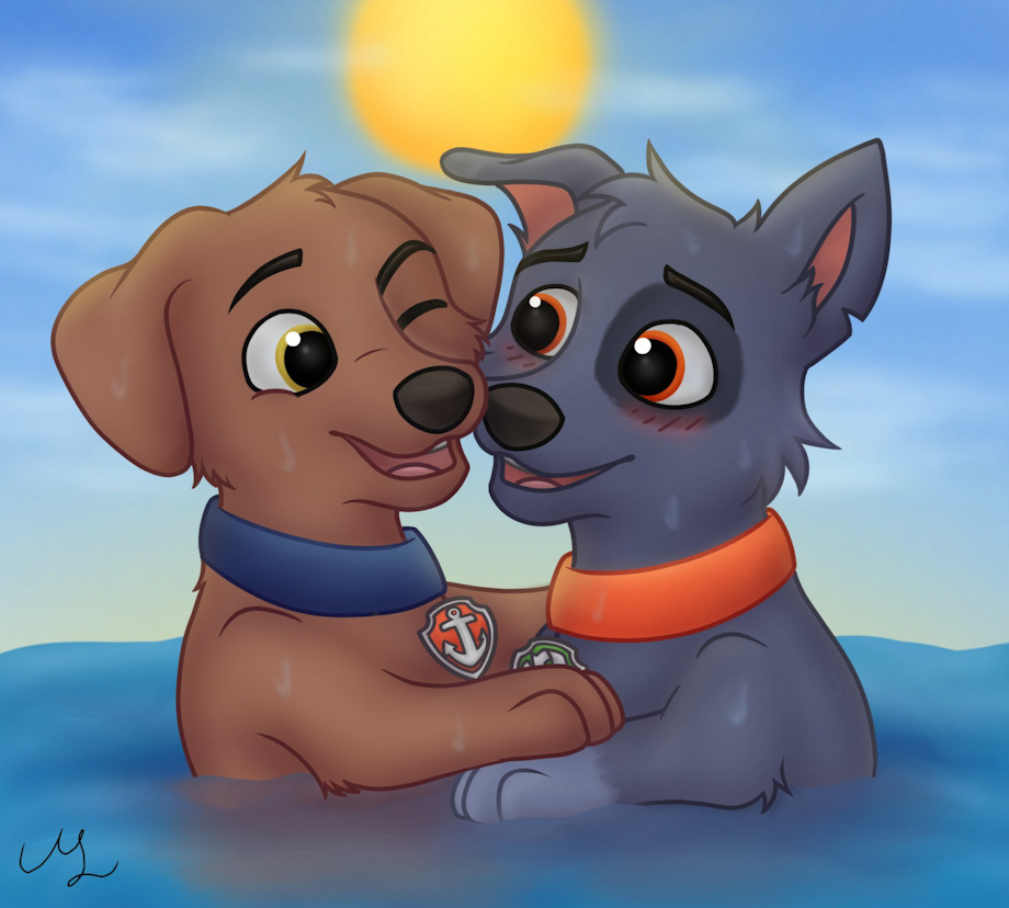 Skye and Chase giggled but Zuma rolled his eyes unamused. That pun was a stretch even for Marshall. Chase eagerly greeted his boyfriend with a quick lick to his snout which Marshall returned. Zuma smiled at that; it made him happy to see his friends being so affectionate with one other. Though it sort of made the lab feel like he was missing out on something...